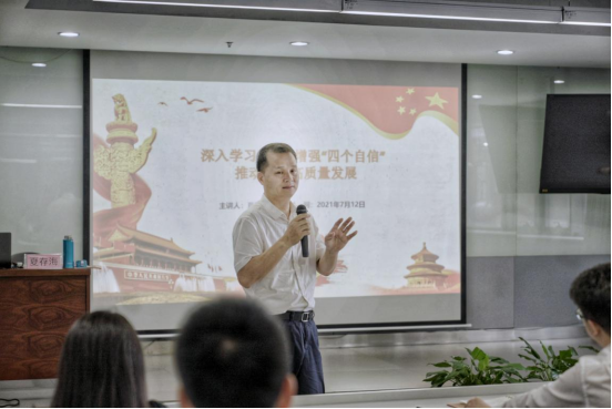 夏存海以《深入学习党史 增强“四个自信” 推动企业高质量发展》为主题,用通俗易懂的语言、详实具体的历史事件回顾了中国共产党波澜壮阔的百年历史,对“为什么要坚定中国特色社会主义道路自信、理论自信、制度自信、文化自信”进行了深入透彻的剖析和解读。