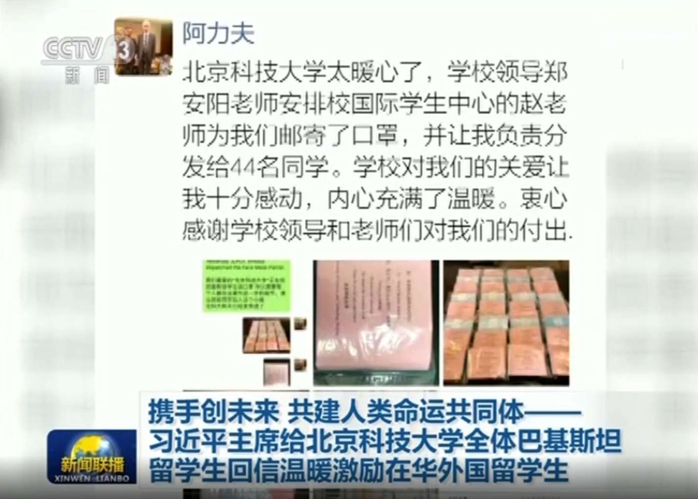 2020年5月17日,北京科技大学全体巴基斯坦留学生收到了习近平总书记的重要回信。习总书记在回信中对北科中外学子患难与共的真情表示欣慰,并对广大留学生及中国青年提出殷切期盼,希望各国青年携手为促进民心相通、推动构建人类命运共同体贡献力量。