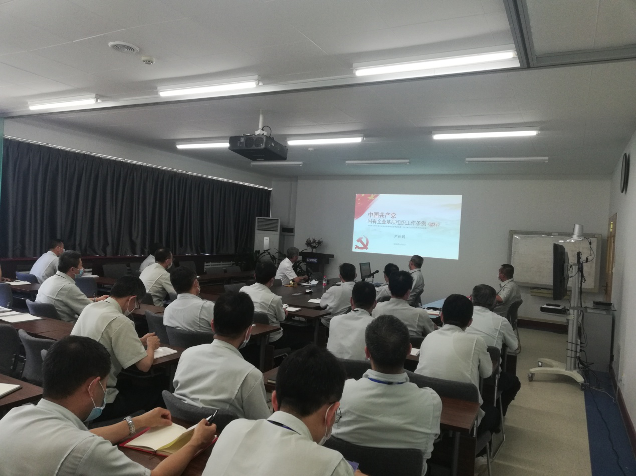 尹书记在党课中详细讲解了《条例》的出台背景及意义,概述了《条例》的主要内容和特点,并深入浅出的对国有企业基层的组织建设、主要职责、党员队伍建设等进行了逐条解读。
