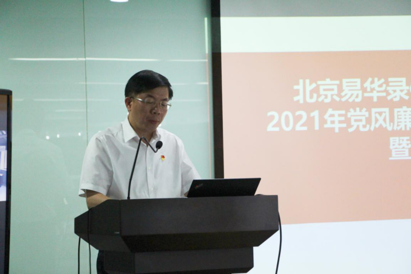 2021年5月17日,易华录党委召开2021年党风廉政建设和反腐败工作会议暨警示教育大会,贯彻落实习近平总书记重要讲话精神和十九届中央纪委五次全会部署,按照国资委和集团党委党风廉政建设和反腐败工作会议暨警示教育大会的要求,开展警示教育,总结和部署重点任务。易华录党委书记、董事长林拥军出席会议并讲话,党委副书记、总裁高辉传达宣贯集团党委书记、董事长欧黎在华录集团党风廉政建设和反腐败工作会议暨警示教育大会上的讲话,党委副书记许海英主持会议并与全体党员干部进行集体谈话,纪委书记刘炜讲授“学党史 守初心 促廉洁 从严治党近百年发展历程”廉政专题党课,纪委办公室主任刘丽莉通报典型案例。
