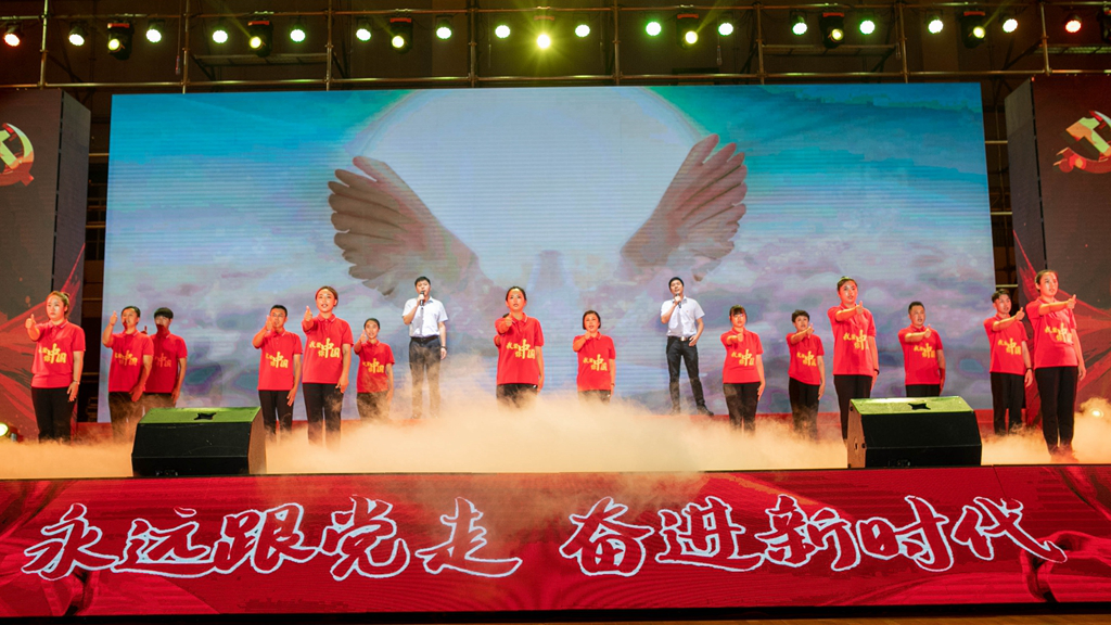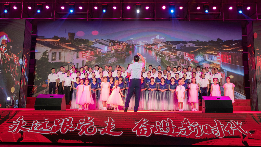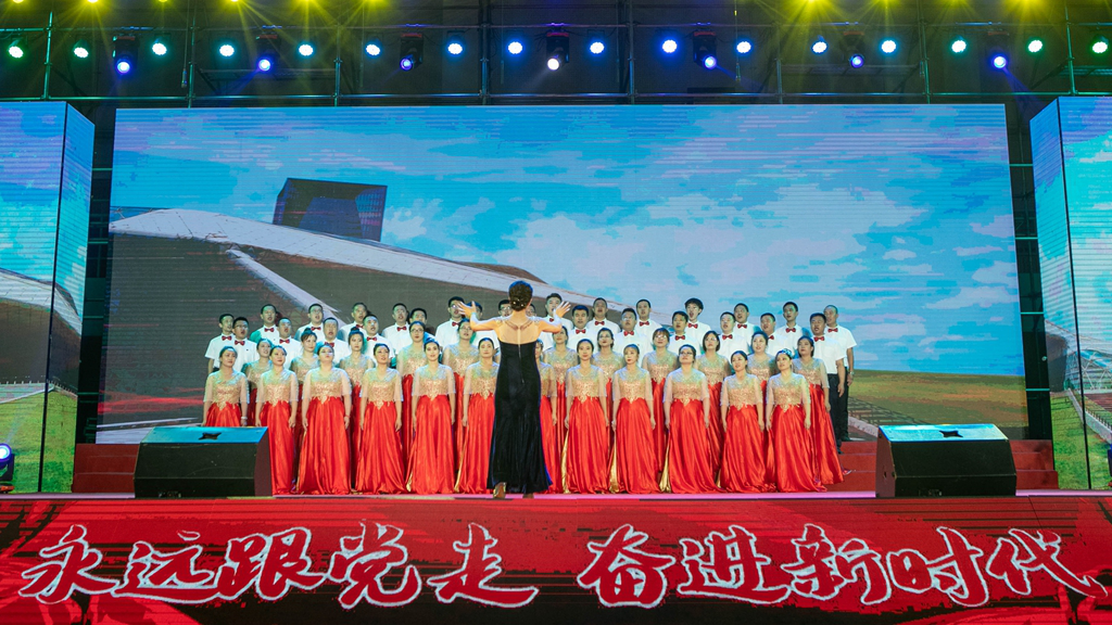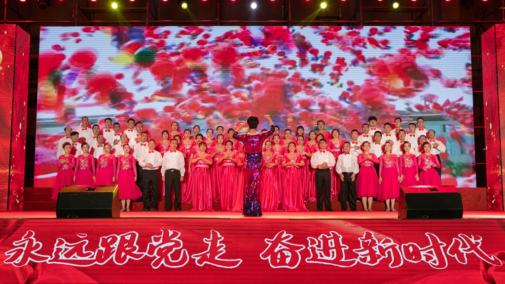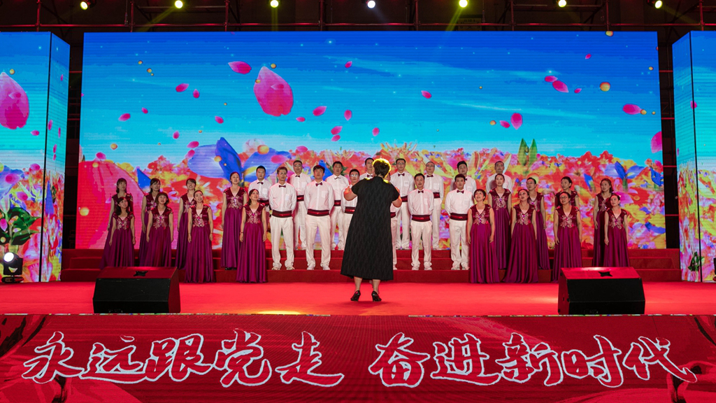华录信产和金华录表演的大合唱《春天的故事》和《我们走在大路上》,讴歌改革开放带来伟大成就,坚定道路自信引领前行方向。