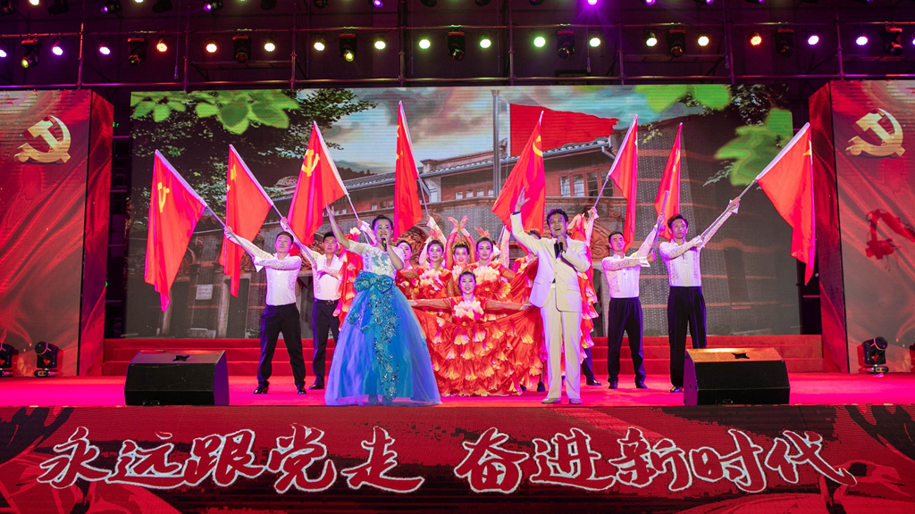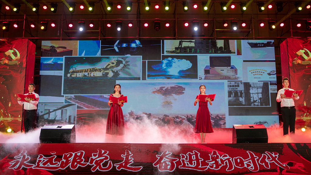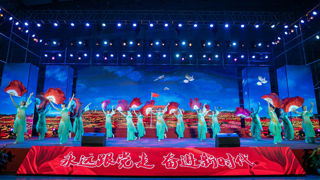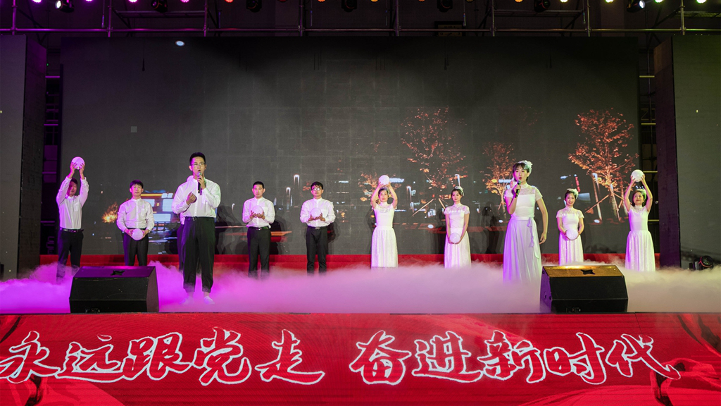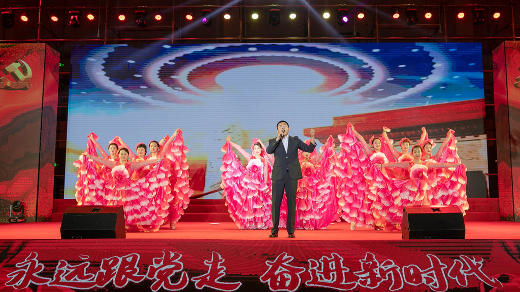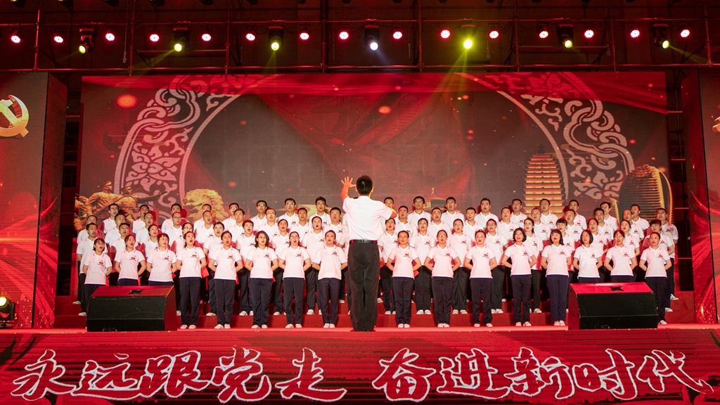 华录信产和金华录表演的大合唱《春天的故事》和《我们走在大路上》,讴歌改革开放带来伟大成就,坚定道路自信引领前行方向。