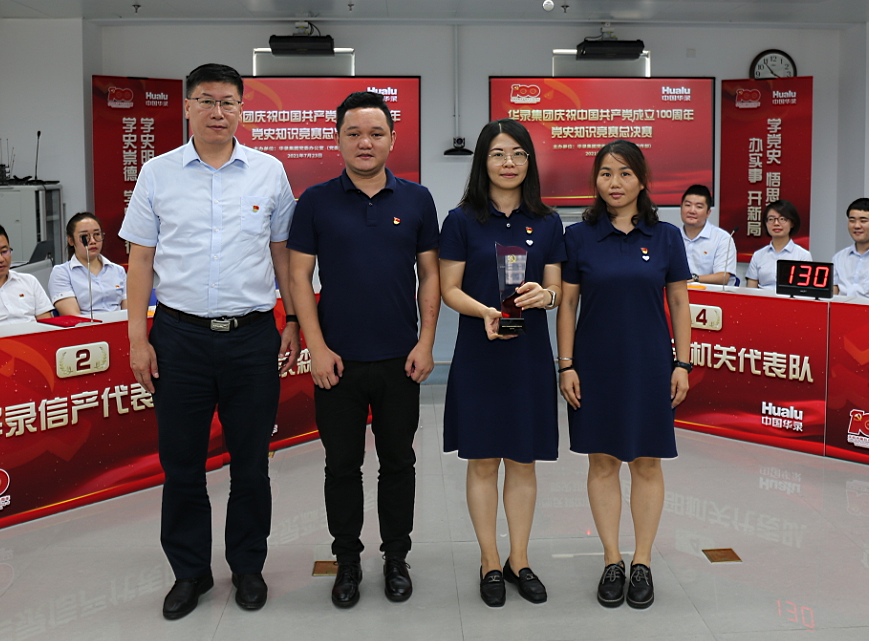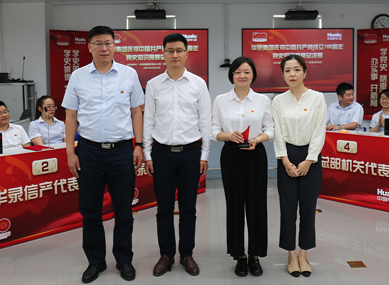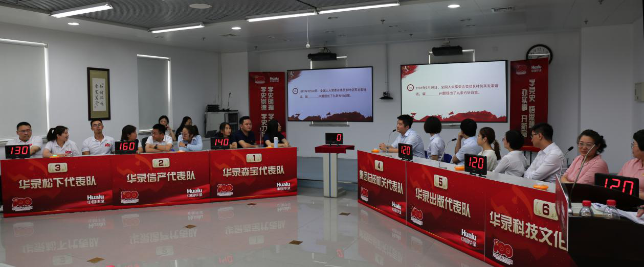 为庆祝中国共产党成立100周年,深入学习习近平总书记关于党的历史的重要论述,引导华录集团广大党员干部职工回顾建党百年的光辉历程,进一步营造党史学习教育浓厚氛围,华录集团党委组织开展“庆祝中国共产党成立100周年党史知识竞赛”。前期经过各级党组织内部选拔,13支参赛队伍进入晋级赛,最终6支代表队脱颖而出,参加了7月23日在大连举办的总决赛。集团公司党委委员、副总经理李茂华,集团工会副主席、群工部部长罗新,党委办公室(党委宣传部)副主任彭其慧莅临现场指导观赛。比赛正式开始前,李茂华致辞,预祝比赛成功,并希望各支代表队发挥出最佳水平,赛出成绩,赛出风格。