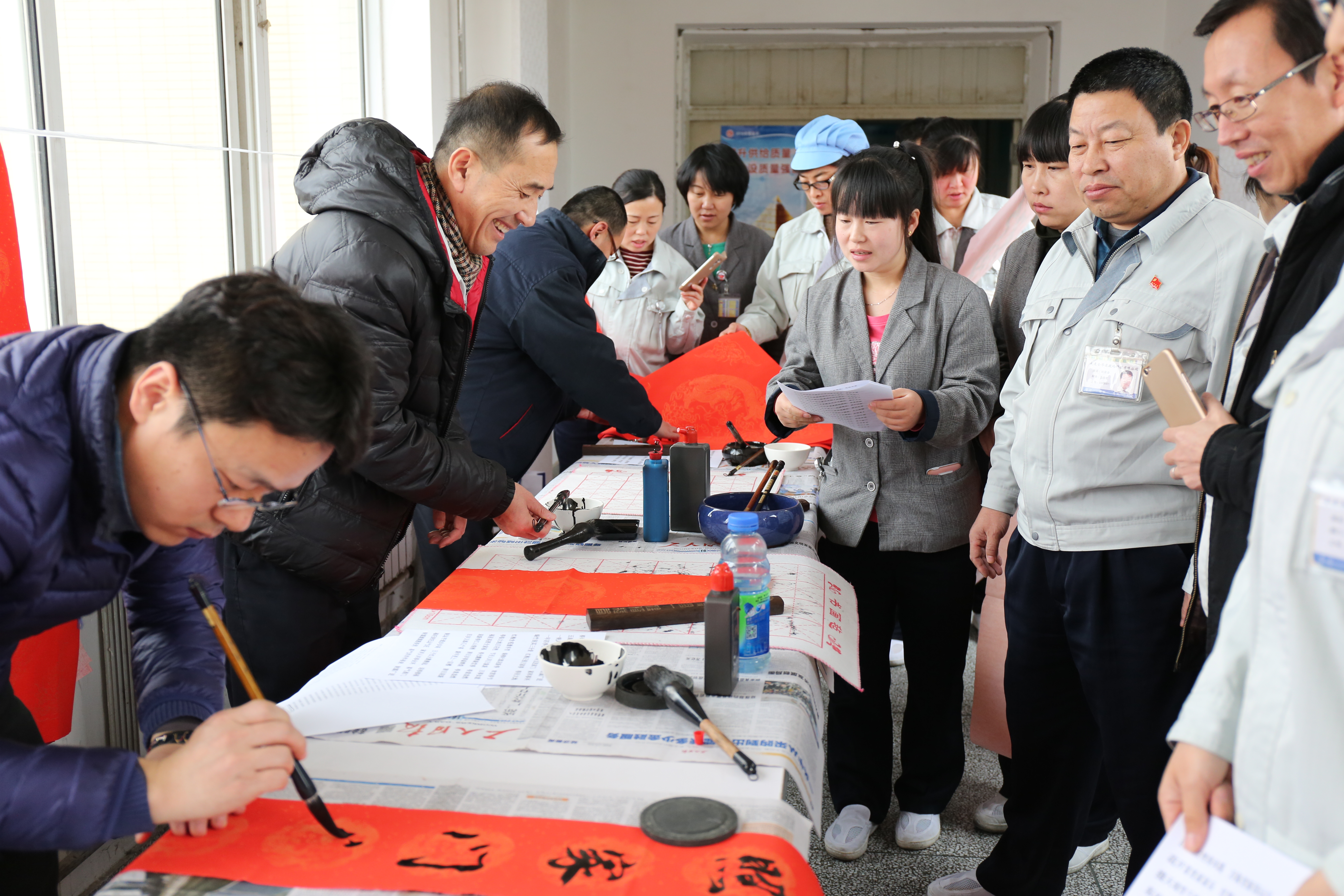 广大员工手捧一幅幅喜庆的春联笑得合不拢嘴,关怀与感动在心与心之间传播开来,喜上眉梢,暖在心头;浓浓的新春祝福中欢乐祥和的节日气氛氤氲馨香,诗情画意。