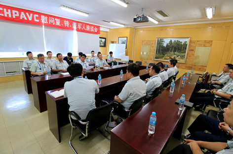 8月1日华松公司组织召开座谈会,公司20余名退伍、复员、转业军人代表出席参加了会议。华松公司党委书记、工会主席朱玉生同志在座谈会上向公司所有复员、转业、退伍军人致以节日的问候。华松公司党委委员、副总经理尹松鹤同志也出席了座谈会,他同与会复、转、退军人代表进行了热情广泛交流,听取了代表们的当兵经历和工作中的感想。
