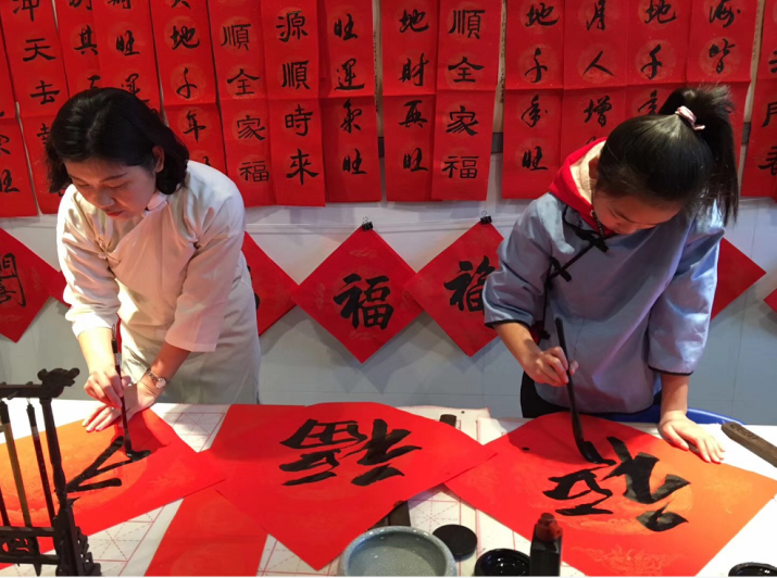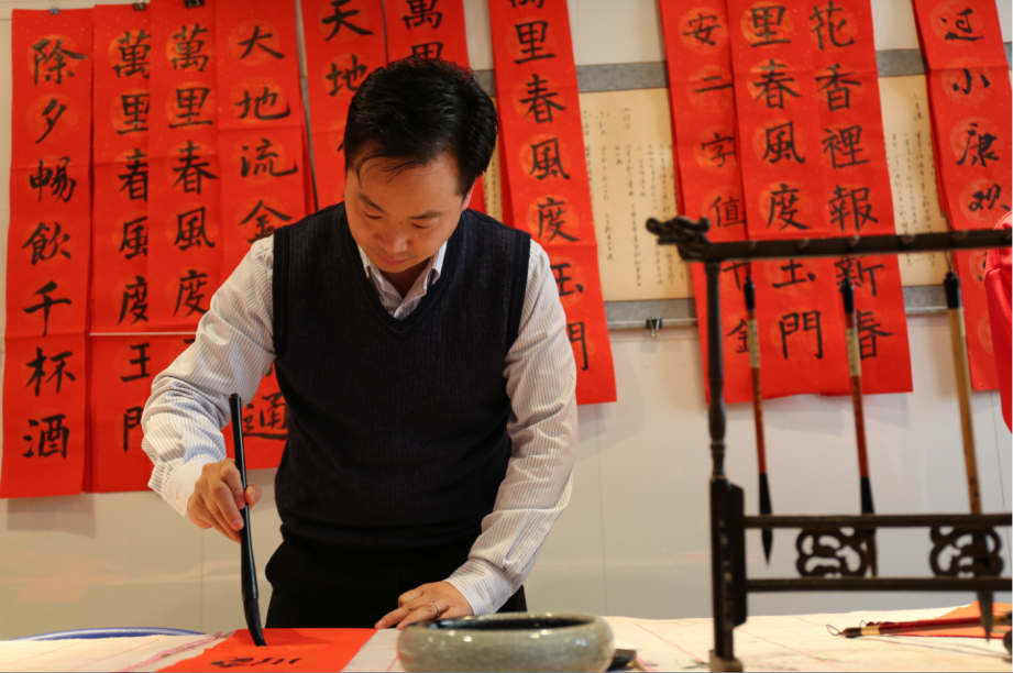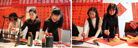 红红春联攥手中,浓浓年味暖心头!500余副对联和福字传递着新春美好的祝福,传统喜庆的节日气氛迅速蔓延,文化韵味随着墨汁的挥散飘洒在华录人的心间。