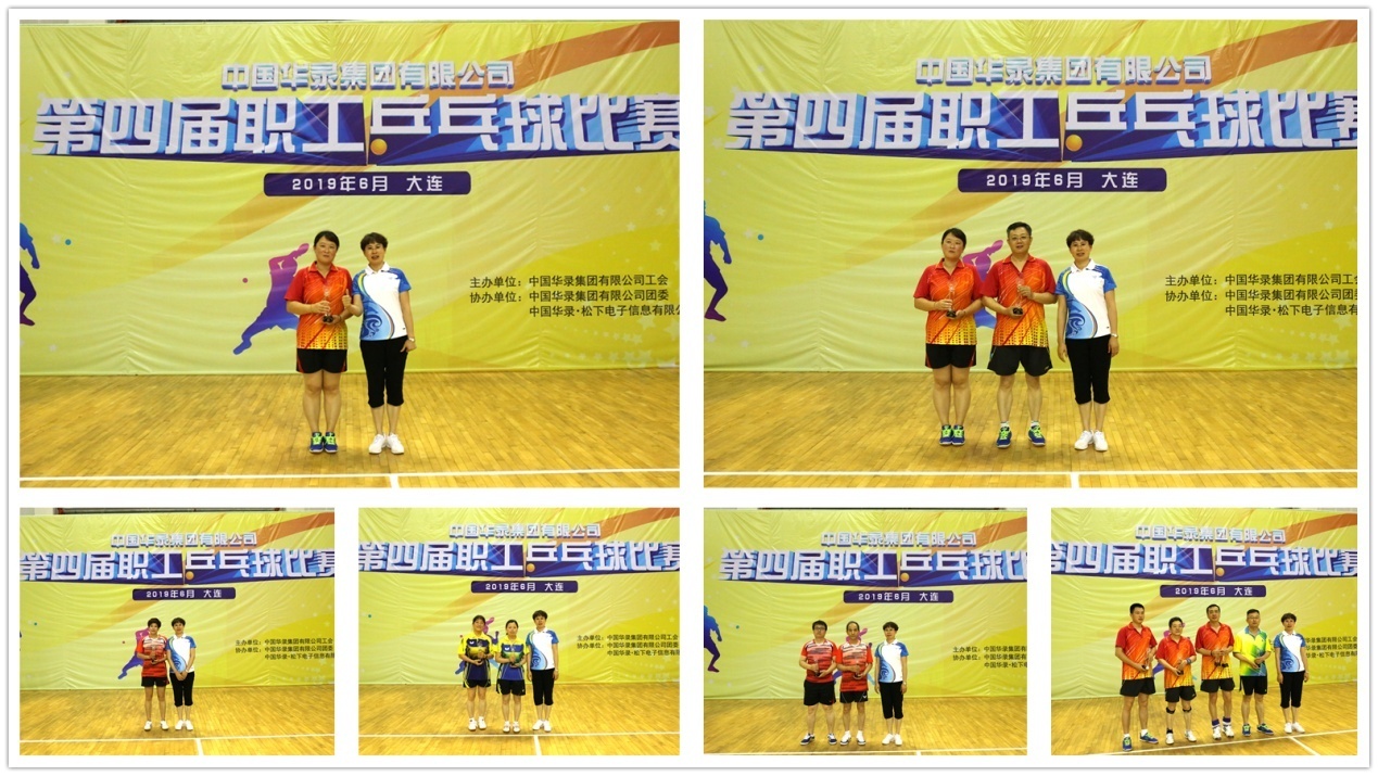 经过两天的激烈竞技,混合团体赛:华录松下获得冠军、华录国正获得亚军、金华录和信产物业并列季军;男子单打(甲组):吴家治(华录松下)获得冠军、高明(金华录)获得亚军、王明东(集团总部)和张文军(华录松下)并列季军;男子单打(乙组):曲彪(华录松下)获得冠军、翟春华(华录松下)获得亚军、刘景全(金华录)和方宽海(华录松下)并列季军;女子单打:付媛(华录松下)获得冠军、张永梅(华录国正)获得亚军、潘冬梅(金华录)和宋春波(金华录)并列季军;双打比赛:方宽海/付媛(华录松下)获得冠军、郑冠军/郑福敏(华录国正)获得亚军、曲彪/翟春华(华录松下)和李明/张文军(华录松下)并列季军。