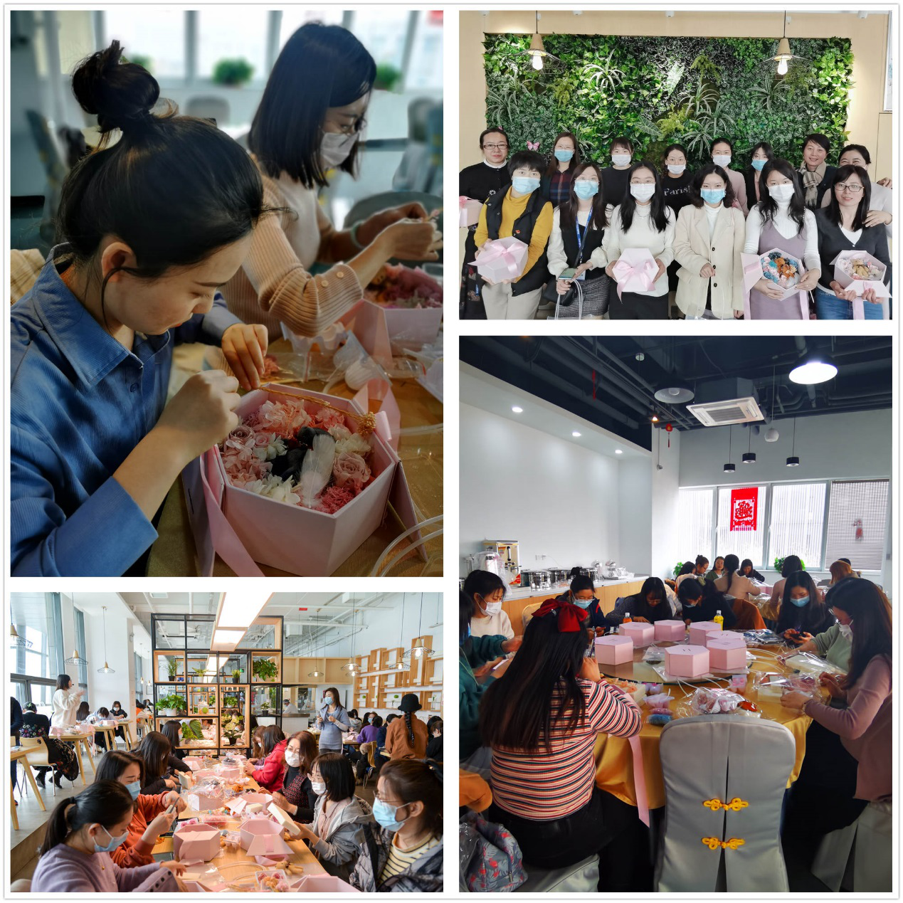 集团北京工会组织易华录、北方华录、华录出版、集团北分和华录资本等单位举办妇女节永生花花盒制作活动。通过花艺老师对花的品种、色彩搭配和插花技巧等基础知识讲解,让女员工们学到了插花技艺,享受了永生花艺带来的乐趣,加深了参加活动人员之间的互动交流,进一步营造温馨、和美的良好工作氛围。