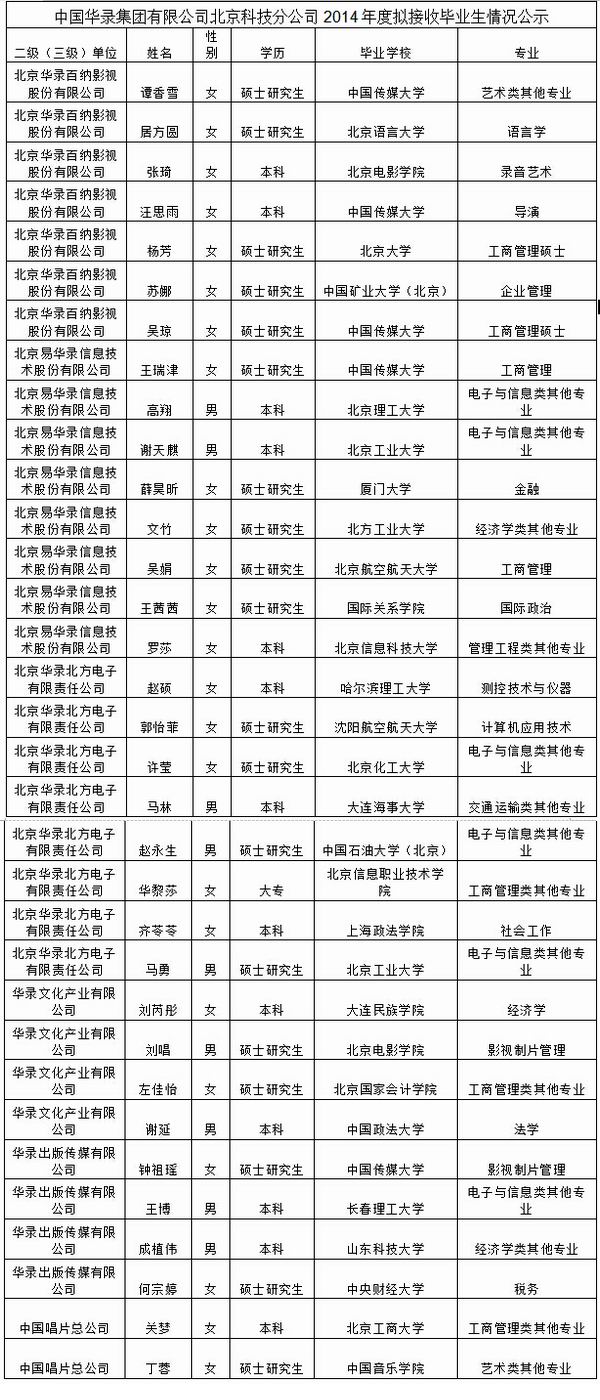浏览查询公示信息请点击:2014年度拟接收毕业生情况公示。