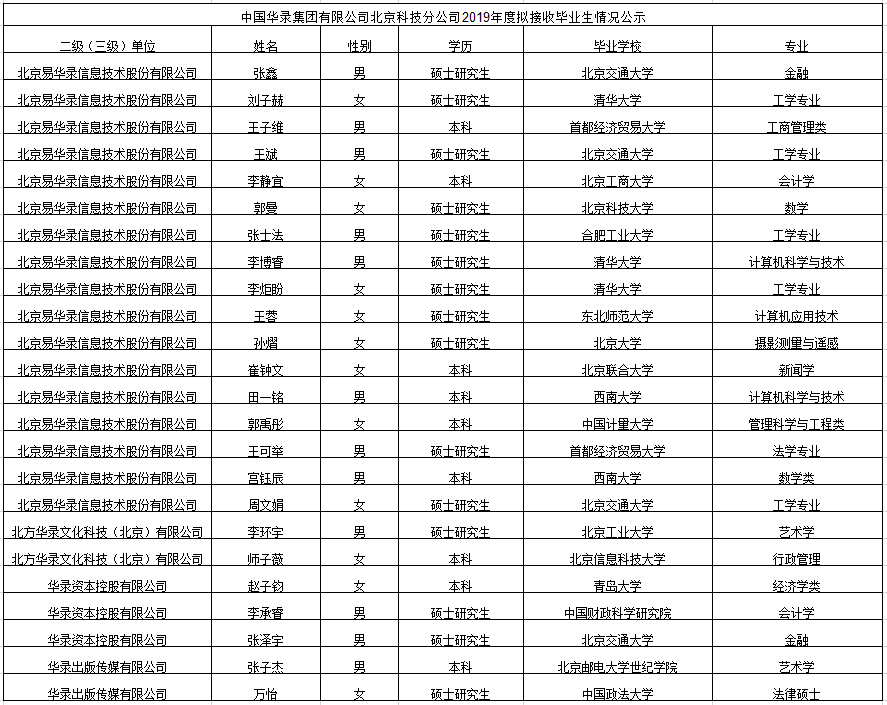 为确保九游手机入口官网在京单位高校毕业生接收工作规范有序开展,现将在京单位提交的高校毕业生接收情况发布公示,接受社会监督。公示期2019年9月23日-2019年9月30日。