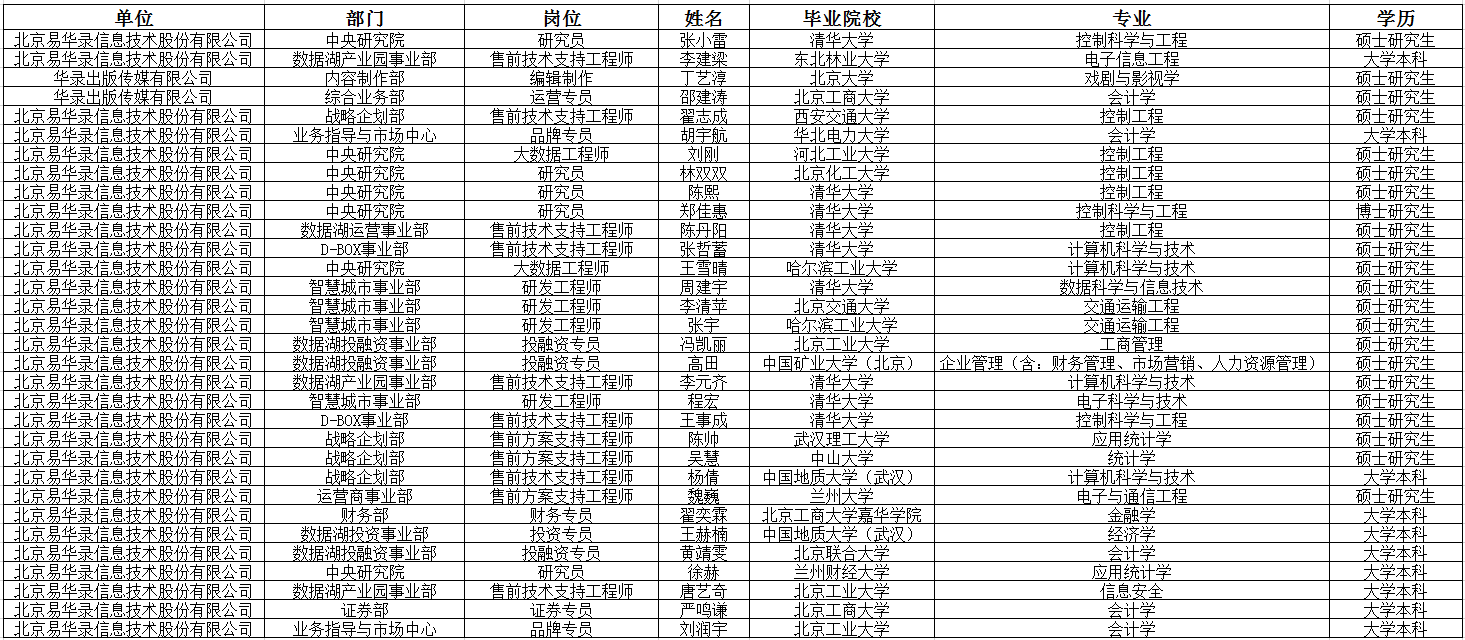 公示信息见下表。公示期间,如有不同意见,可通过直接面谈、电话及电子邮件等方式向集团组织人事部反映。